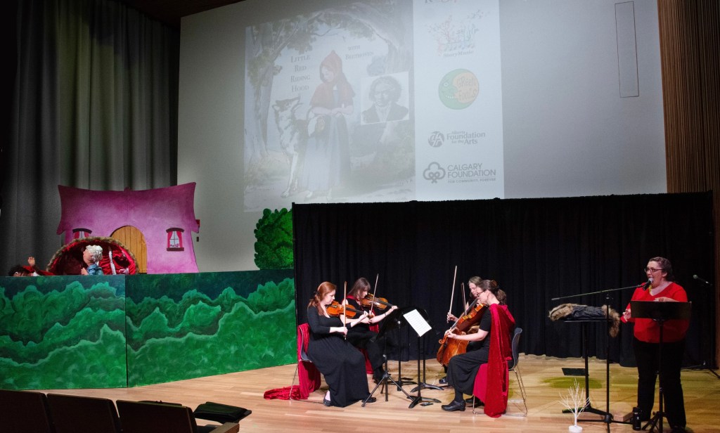 We can’t wait to join Green Fools Theatre once again to present Little Red Riding Hood with Beethoven alongside their amazing puppetry, thanks to a recent grant from Alberta Foundation for the Arts! The photo below shows the dress rehearsal of our sold-out performance with them back in February 2023 at the Central Library Performance Hall in Calgary. It was a rollicking good time! We are working to secure a venue and will update as things develop.