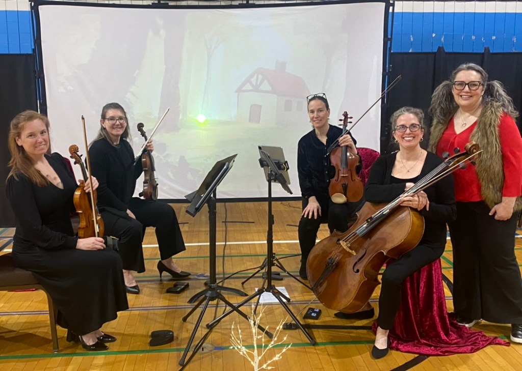 Thanks to CADME (Calgary Association for the Development of Music Education) and MPTF (Music Performance Trust Fund), we had the opportunity to perform yet again today! We are so grateful for their support. This time we brought Little Red Riding Hood with Beethoven to over 650 students at Simons Valley School, and over 200 students at Calgary Jewish Academy, including a student solo performance. It’s amazing how universal Beethoven’s music is, as well as fairytales– they never get old: the kids were intensely focused in their listening. Lots of great questions as always from the students, including one who wondered how the acid in Wolf’s stomach might affect Red Riding Hood and Grandma!