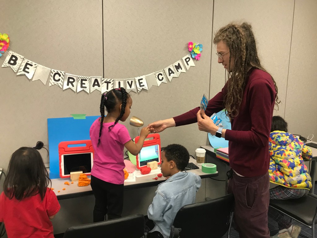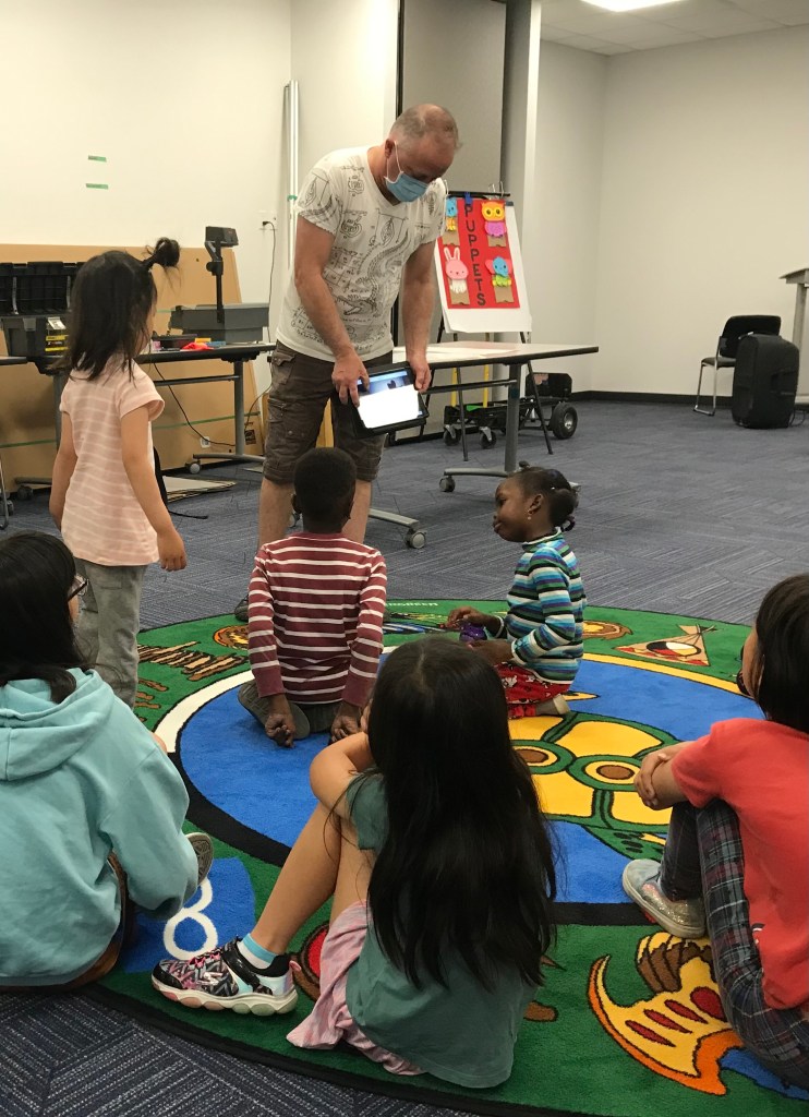 This summer, StoryMusic was lucky to be part of a unique collaboration between the National Arts Centre, filmmaker Emil Agopian, teaching artists Samantha Whelan Kotkas and Walter MacDonald White Bear, voice artist Jonathan Love, puppet guru Dean Bareham, and the good people at the Centre for Newcomers, bringing a week-long arts camp to children recently arrived in Canada. The kids, teachers and counsellors had an amazing array of artistic experiences and exposure to top teaching artists in Alberta: a performance of StoryMusic’s Grounder’s Grand Adventure with Jonathan Love narrating, an amazing presentation by Walter MacDonald White Bear, a shadow puppet-making session with Green Fools Theatre’s founder Dean Bareham, and a masterful wrap-up with Samantha Whelan Kotkas. Emil Agopian was fantastic at teaching the kids claymation, and got his crew to film along the way. He will later distill it all into a documentary, and work with StoryMusic to create a film of storytelling and music that responds the kids’ responses to the camp. Stay tuned for more on this exciting venture! We are deeply grateful to the National Arts Centre for making it all possible ❤️