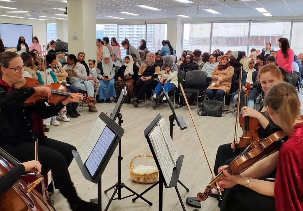 We are super grateful for Aeolian Strings’ generous loan and Nykita’s help in finding a rare tenth-size cello for kids to try at our instrument discovery zoos after our concerts this past week! There was quite the lineup of eager kids at Calgary Immigrant Women’s Association as well as the Central Library, and we hope it leads to more music makers in the coming generations ❤️