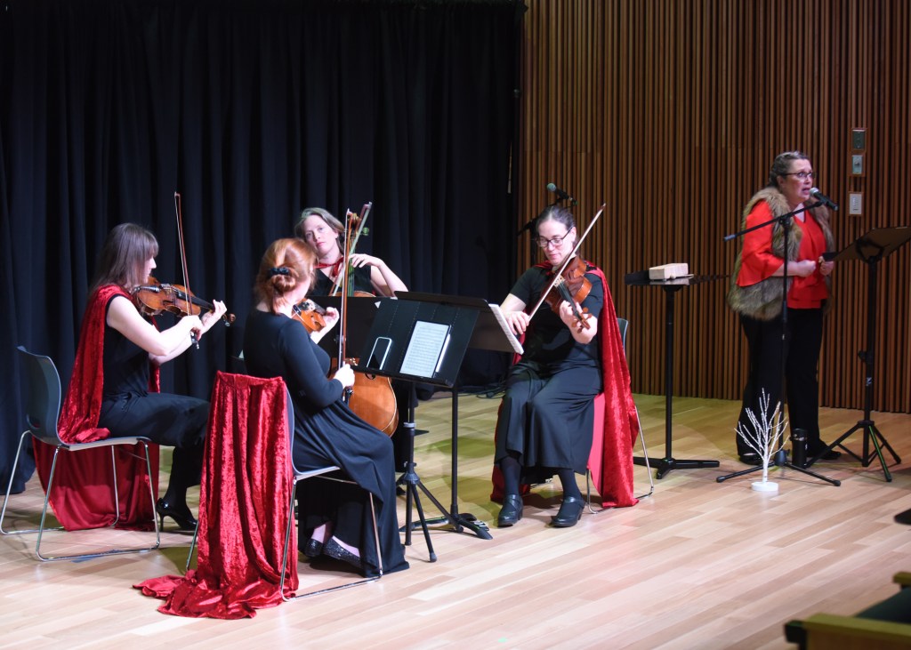 Luminous Voices singer Julie Freedman Smith will narrate/sing, along with Kensington Sinfonia members Genevieve Micheletti (violin 1), Diane Lane (violin 2), Liza Scriggins (writer and viola), and Andrea Case (cello).